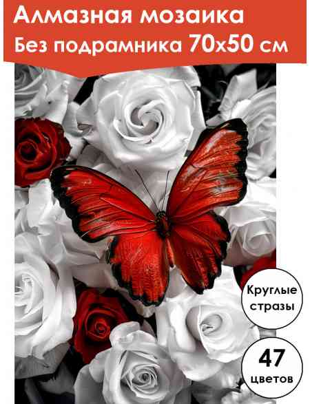 Алмазная мозаика без подрамника «Бабочка» 70x50 см, 47 цветов