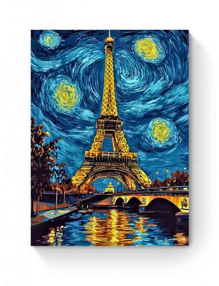 Алмазная мозаика на подрамнике «Ночь в Париже» 50x40 см, 50 цветов