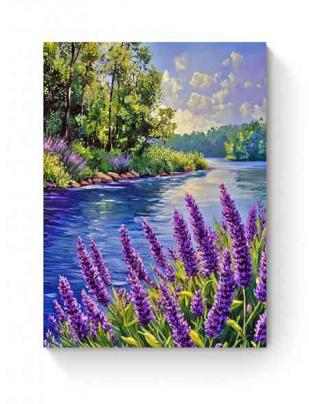 Алмазная мозаика на подрамнике «Шалфей у реки» 50x40 см, 50 цветов