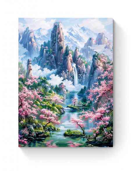 Алмазная мозаика на подрамнике «Сакура в горах» 50x40 см, 50 цветов