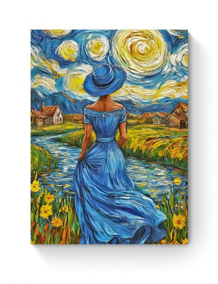 Алмазная мозаика на подрамнике «Дама в голубом» 50x40 см, 50 цветов