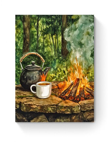 Алмазная мозаика на подрамнике «Чай на костре» 50x40 см, 50 цветов