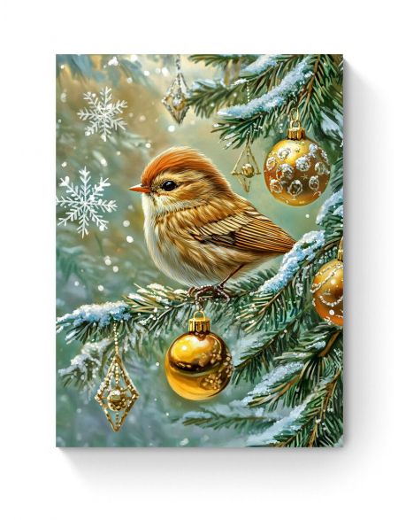 Алмазная мозаика на подрамнике «Птичка на ветке» 50x40 см, 50 цветов