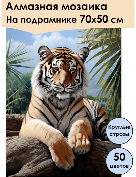 Алмазная мозаика на подрамнике «Тигр» 70x50 см, 50 цветов