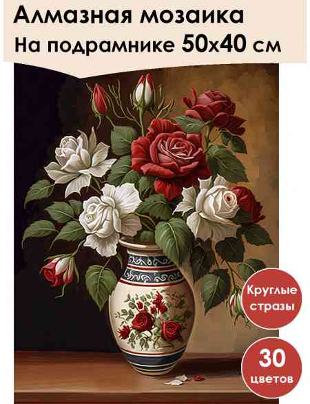 Алмазная мозаика на подрамнике «Букет гармония» 50x40 см, 30 цветов