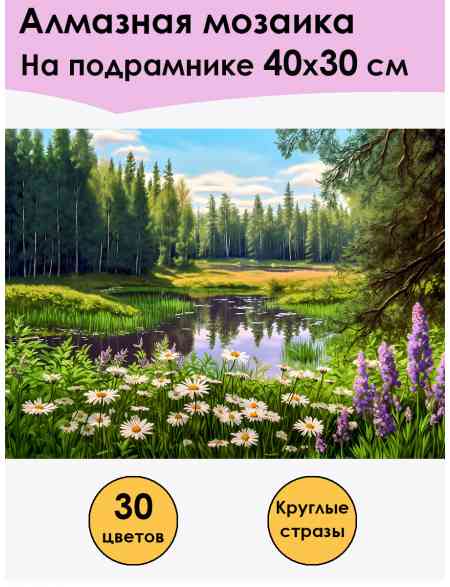 Алмазная мозаика на подрамнике «Луговые цветы» 40x30 см, 30 цветов
