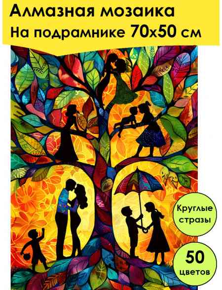Алмазная мозаика на подрамнике «Древо семьи» 70x50 см, 50 цветов