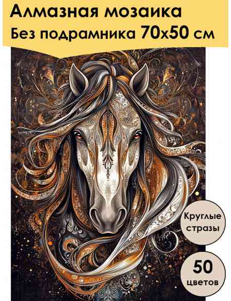 Алмазная мозаика без подрамника «Золотой конь» 70x50 см, 50 цветов