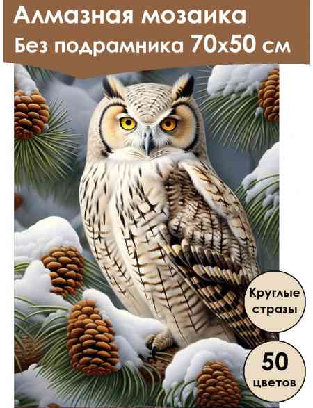 Алмазная мозаика без подрамника «Совушка» 70x50 см, 50 цветов