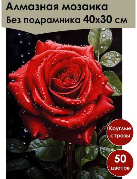 Алмазная мозаика без подрамника «Роза» 40x30 см, 50 цветов