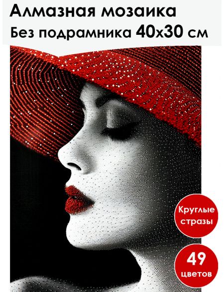 Алмазная мозаика без подрамника «Девушка в красном» 40x30 см, 49 цветов