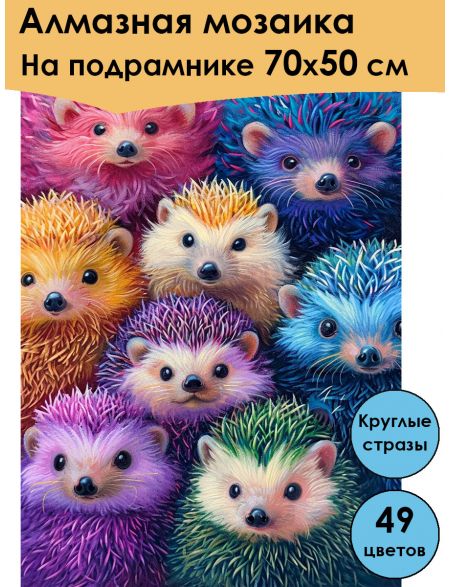 Алмазная мозаика на подрамнике «Ёжики» 70x50 см, 49 цветов