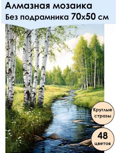 Алмазная мозаика без подрамника «Ручей» 70x50 см, 48 цветов