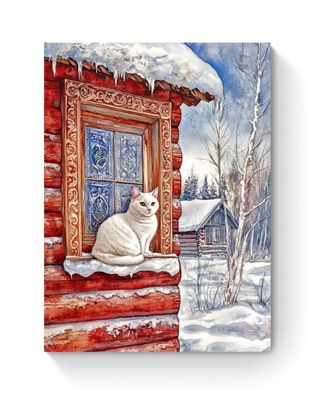 Алмазная мозаика на подрамнике «Зима в деревне» 50x40 см