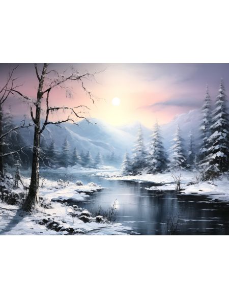 Алмазная мозаика на подрамнике «Зимний закат» 50x40 см, 33 цветов