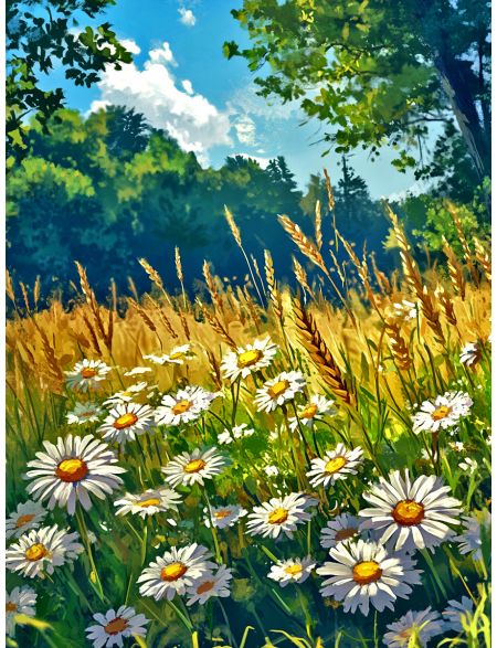 Алмазная мозаика без подрамника «Ромашковое поле» 130x100 см