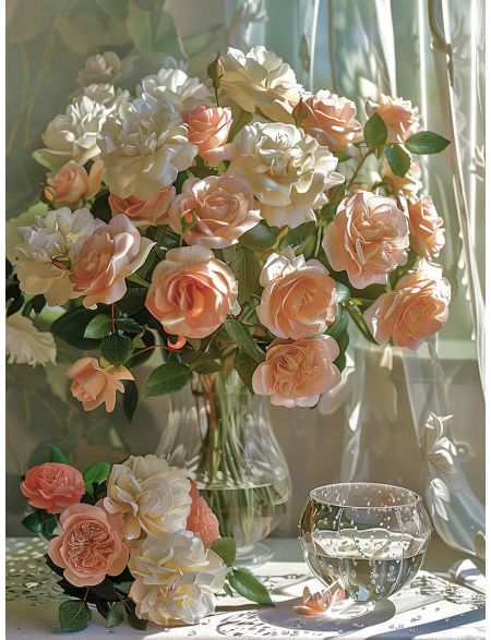 Алмазная мозаика без подрамника «Розы в вазе» 130x100 см, 47 цветов