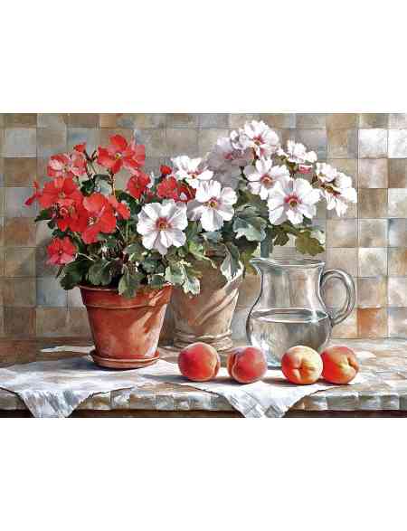 Алмазная мозаика без подрамника «Герань в горшке» 130x100 см