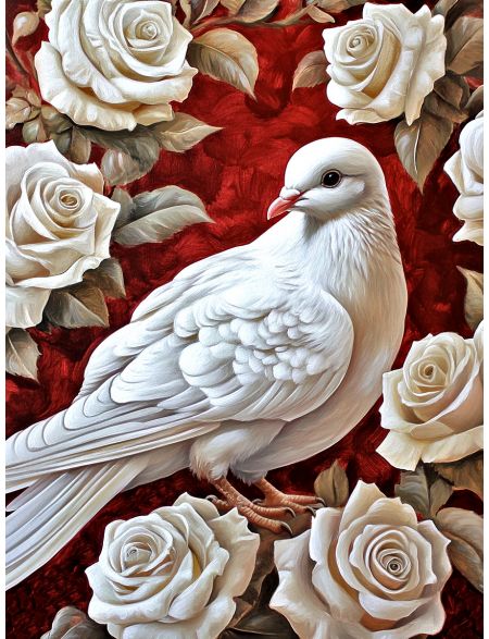 Алмазная мозаика без подрамника «Голубка в розах» 130x100 см