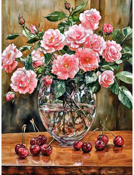 Алмазная мозаика без подрамника «Розы и вишня» 130x100 см