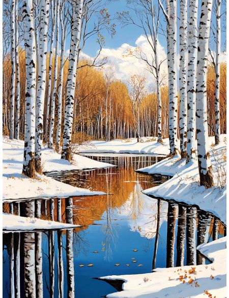 Алмазная мозаика без подрамника «Березы у реки» 130x100 см