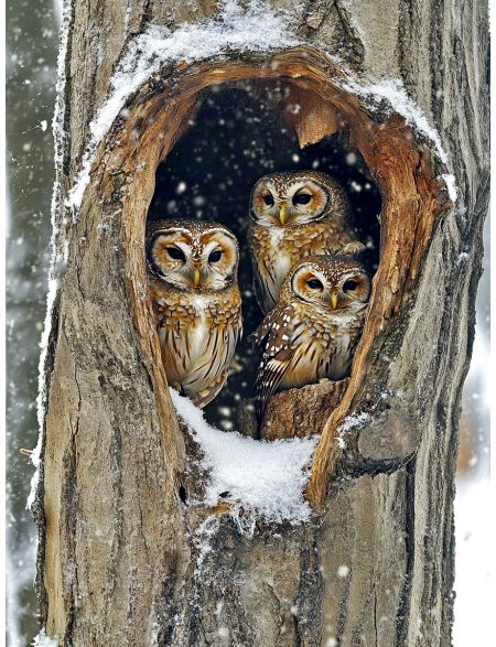 Алмазная мозаика без подрамника «Совята в гнезде» 130x100 см