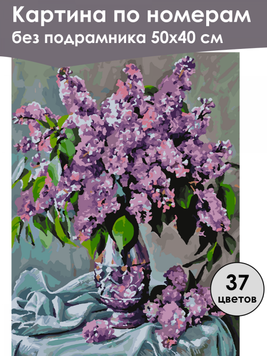 Картина по номерам без подрамника, размер 50х40 см, произведена нами. Она включает 40 оттенков и 3008 контуров, что придаёт ей глубину цвета и плавные переходы. Картина выглядит более ярко и живо. В комплект входит глянцевый лак, которым можно покрыть работу по желанию. Краски имеют хорошую укрывистость, хватает двух проходов что бы закрасить символы на схеме. Так же они сохраняют текстуру мазков, не растекаясь и не разглаживаясь полностью на холсте. При покрытии глянцевым лаком создаётся эффект приближенный к масляной живописи. Краски упакованы герметично, что сохраняет их жидкими. Все необходимые инструменты для начала работы также входят в комплект. Мы не используем экосольвентные чернила, которые содержат свинец и могут быть вредны для здоровья. Наши картины напечатаны безопасными водными пигментными чернилами, обеспечивающими чёткое изображение и легко читаемые обозначения. Холст плотный, имеет мелкую зернистость, легко разглаживается и устойчив к сминанию. Картина поставляется в бурой коробке. Следует отметить, что картина без подрамника её нельзя натянуть на подрамник из-за узких краёв, она предназначена для оформления в рамочку. Яркая и выразительная композиция с букетом сирени во фиолетово-зеленых тонах; пышные сиреневые цветы контрастируют с густыми зелеными листьями, букет расположен в изящной ваза с узорами, стоящей на легкой драпировке светлого цвета, создавая атмосферу весеннего уюта и очарования.