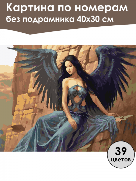 Картина по номерам без подрамника, размер 40х30 см, произведена нами. Она включает 40 оттенков и 2474 контуров, что придаёт ей глубину цвета и плавные переходы. Картина выглядит более ярко и живо. В комплект входит глянцевый лак, которым можно покрыть работу по желанию. Краски имеют хорошую укрывистость, хватает двух проходов что бы закрасить символы на схеме. Так же они сохраняют текстуру мазков, не растекаясь и не разглаживаясь полностью на холсте. При покрытии глянцевым лаком создаётся эффект приближенный к масляной живописи. Краски упакованы герметично, что сохраняет их жидкими. Все необходимые инструменты для начала работы также входят в комплект. Мы не используем экосольвентные чернила, которые содержат свинец и могут быть вредны для здоровья. Наши картины напечатаны безопасными водными пигментными чернилами, обеспечивающими чёткое изображение и легко читаемые обозначения. Холст плотный, имеет мелкую зернистость, легко разглаживается и устойчив к сминанию. Картина поставляется в бурой коробке. Следует отметить, что картина без подрамника её нельзя натянуть на подрамник из-за узких краёв, она предназначена для оформления в рамочку. Девушка-ангел с длинными тёмными волосами и чёрными крыльями, сидящая на фоне скал; она одета в элегантное платье тёмно-синего цвета, которое гармонирует с оттенками крыльев, создавая атмосферу фантастики и мистики.