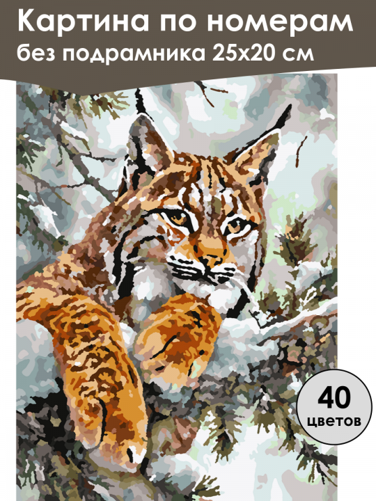 Картина по номерам без подрамника, размер 25х20 см, произведена нами. Она включает 40 оттенков и 1838 контуров, что придаёт ей глубину цвета и плавные переходы. Картина выглядит более ярко и живо. В комплект входит глянцевый лак, которым можно покрыть работу по желанию. Краски качественные, имеют хорошую укрывистость, хватает двух проходов что бы закрасить символы на схеме. Они упакованы герметично, что сохраняет их жидкими. Все необходимые инструменты для начала работы также включены в комплект. Мы не используем экосольвентные чернила, которые содержат свинец и могут быть вредны для здоровья. Наши картины напечатаны безопасными водными пигментными чернилами, обеспечивающими чёткое изображение и легко читаемые обозначения. Холст плотный, имеет мелкую зернистость, легко разглаживается и устойчив к сминанию. Картина поставляется в бурой коробке. Следует отметить, что картина без подрамника её нельзя натянуть на подрамник из-за узких краёв, она предназначена для оформления в рамочку. Рысь, лежащая на заснеженной ветке дерева. Шерсть животного золотисто-коричневая с характерными тёмными пятнами и полосами. У рыси большие уши с кисточками, выразительные глаза и чёрно-белые отметины на морде. Вокруг видны зелёные сосновые ветви, покрытые снегом, что создаёт зимнюю атмосферу.