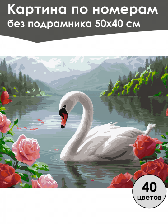 Картина по номерам без подрамника, размер 50х40 см, произведена нами. Она включает 40 оттенков и 1666 контуров, что придаёт ей глубину цвета и плавные переходы. Картина выглядит более ярко и живо. В комплект входит глянцевый лак, которым можно покрыть работу по желанию. Краски имеют хорошую укрывистость, хватает двух проходов что бы закрасить символы на схеме. Так же они сохраняют текстуру мазков, не растекаясь и не разглаживаясь полностью на холсте. При покрытии глянцевым лаком создаётся эффект приближенный к масляной живописи. Краски упакованы герметично, что сохраняет их жидкими. Все необходимые инструменты для начала работы также входят в комплект. Мы не используем экосольвентные чернила, которые содержат свинец и могут быть вредны для здоровья. Наши картины напечатаны безопасными водными пигментными чернилами, обеспечивающими чёткое изображение и легко читаемые обозначения. Холст плотный, имеет мелкую зернистость, легко разглаживается и устойчив к сминанию. Картина поставляется в бурой коробке. Следует отметить, что картина без подрамника её нельзя натянуть на подрамник из-за узких краёв, она предназначена для оформления в рамочку. Белый лебедь грациозно плывёт по тихому озеру, окружённому живописными зелёными лесами и величественными горами на фоне, в воде отражаются нежные розы, распустившиеся вокруг озера, добавляя яркие акценты к спокойствию природной сцены.