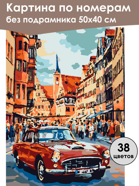 Картина по номерам без подрамника, размер 50х40 см, произведена нами. Она включает 38 оттенков и 2815 контуров, что придаёт ей глубину цвета и плавные переходы. Картина выглядит более ярко и живо. В комплект входит глянцевый лак, которым можно покрыть работу по желанию. Краски имеют хорошую укрывистость, хватает двух проходов что бы закрасить символы на схеме. Так же они сохраняют текстуру мазков, не растекаясь и не разглаживаясь полностью на холсте. При покрытии глянцевым лаком создаётся эффект приближенный к масляной живописи. Краски упакованы герметично, что сохраняет их жидкими. Все необходимые инструменты для начала работы также входят в комплект. Мы не используем экосольвентные чернила, которые содержат свинец и могут быть вредны для здоровья. Наши картины напечатаны безопасными водными пигментными чернилами, обеспечивающими чёткое изображение и легко читаемые обозначения. Холст плотный, имеет мелкую зернистость, легко разглаживается и устойчив к сминанию. Картина поставляется в бурой коробке. Следует отметить, что картина без подрамника её нельзя натянуть на подрамник из-за узких краёв, она предназначена для оформления в рамочку. В стилистике поп-арт изображены улицы старого города с характерной архитектурой, оживлённой пешеходной зоной и красным винтажным автомобилем на переднем плане; фокус сделан на игре ярких цветов и контрастов, создавая динамичную и современную атмосферу.