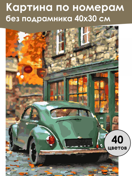 Картина по номерам без подрамника, размер 40х30 см, произведена нами. Она включает 40 оттенков и 2937 контуров, что придаёт ей глубину цвета и плавные переходы. Картина выглядит более ярко и живо. В комплект входит глянцевый лак, которым можно покрыть работу по желанию. Краски имеют хорошую укрывистость, хватает двух проходов что бы закрасить символы на схеме. Так же они сохраняют текстуру мазков, не растекаясь и не разглаживаясь полностью на холсте. При покрытии глянцевым лаком создаётся эффект приближенный к масляной живописи. Краски упакованы герметично, что сохраняет их жидкими. Все необходимые инструменты для начала работы также входят в комплект. Мы не используем экосольвентные чернила, которые содержат свинец и могут быть вредны для здоровья. Наши картины напечатаны безопасными водными пигментными чернилами, обеспечивающими чёткое изображение и легко читаемые обозначения. Холст плотный, имеет мелкую зернистость, легко разглаживается и устойчив к сминанию. Картина поставляется в бурой коробке. Следует отметить, что картина без подрамника её нельзя натянуть на подрамник из-за узких краёв, она предназначена для оформления в рамочку. Ретро-автомобиль, припаркованный на улице рядом с каменным зданием, с яркими оранжевыми и жёлтыми листьями на деревьях, создающими атмосферу осени.