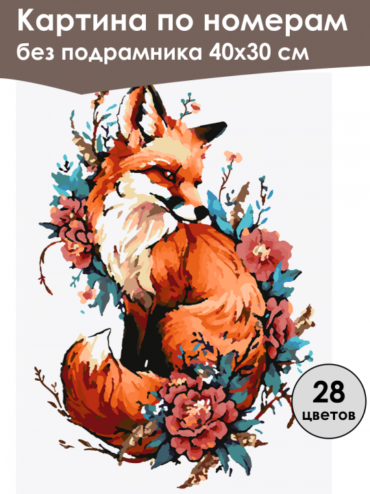 Картина по номерам без подрамника, размер 40х30 см, произведена нами. Она включает 28 оттенков и 1401 контуров, что придаёт ей глубину цвета и плавные переходы. Картина выглядит более ярко и живо. В комплект входит глянцевый лак, которым можно покрыть работу по желанию. Краски имеют хорошую укрывистость, хватает двух проходов что бы закрасить символы на схеме. Так же они сохраняют текстуру мазков, не растекаясь и не разглаживаясь полностью на холсте. При покрытии глянцевым лаком создаётся эффект приближенный к масляной живописи. Краски упакованы герметично, что сохраняет их жидкими. Все необходимые инструменты для начала работы также входят в комплект. Мы не используем экосольвентные чернила, которые содержат свинец и могут быть вредны для здоровья. Наши картины напечатаны безопасными водными пигментными чернилами, обеспечивающими чёткое изображение и легко читаемые обозначения. Холст плотный, имеет мелкую зернистость, легко разглаживается и устойчив к сминанию. Картина поставляется в бурой коробке. Следует отметить, что картина без подрамника её нельзя натянуть на подрамник из-за узких краёв, она предназначена для оформления в рамочку. Яркая иллюстрация с грациозной лисой, с рыжей шерстью, обрамлённую пышными цветами и листьями; лиса повернула голову влево, создавая ощущение динамики и мистической атмосферы с элементами природы вокруг.