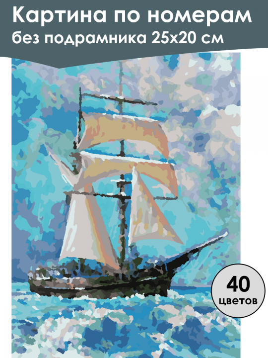 Картина по номерам без подрамника, размер 25х20 см, произведена нами. Она включает 40 оттенков и 1415 контуров, что придаёт ей глубину цвета и плавные переходы. Картина выглядит более ярко и живо. В комплект входит глянцевый лак, которым можно покрыть работу по желанию. Краски качественные, имеют хорошую укрывистость, хватает двух проходов что бы закрасить символы на схеме. Они упакованы герметично, что сохраняет их жидкими. Все необходимые инструменты для начала работы также включены в комплект. Мы не используем экосольвентные чернила, которые содержат свинец и могут быть вредны для здоровья. Наши картины напечатаны безопасными водными пигментными чернилами, обеспечивающими чёткое изображение и легко читаемые обозначения. Холст плотный, имеет мелкую зернистость, легко разглаживается и устойчив к сминанию. Картина поставляется в бурой коробке. Следует отметить, что картина без подрамника её нельзя натянуть на подрамник из-за узких краёв, она предназначена для оформления в рамочку. Парусный корабль, плывущий по неспокойным морским волнам под ярко-голубым небом с облаками; мачты обрамлены развевающимися парусами, а вдалеке видны перистые облака, создавая ощущение движения и свободы, присущее морским путешествиям.