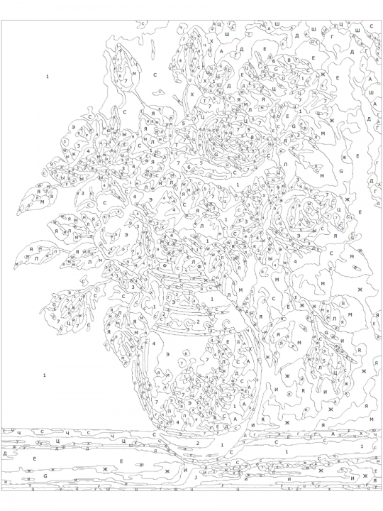 Картина по номерам на подрамнике, размер 25х20 см, произведена нами. Она включает 40 оттенков и 1171 контуров, что придаёт ей глубину цвета и плавные переходы. Картина выглядит более ярко и живо. В комплект входит глянцевый лак, которым можно покрыть работу по желанию. Краски имеют хорошую укрывистость, хватает двух проходов что бы закрасить символы на схеме. Так же они сохраняют текстуру мазков, не растекаясь и не разглаживаясь полностью на холсте. При покрытии глянцевым лаком создаётся эффект приближенный к масляной живописи. Краски упакованы герметично, что сохраняет их жидкими. Все необходимые инструменты для начала работы также включены в комплект, в том числе и крепления на стену. В картине используется крепкий подрамник со специальной вставкой, которая предотвращает провисание холста во время рисования. Это обеспечивает комфортный процесс работы и гарантирует, что холст всегда будет оставаться хорошо натянутым. Мы не используем экосольвентные чернила, которые содержат свинец и могут быть вредны для здоровья. Наши картины напечатаны безопасными водными пигментными чернилами, обеспечивающими чёткое изображение и легко читаемые обозначения. Холст плотный, имеет мелкую зернистость, легко разглаживается и устойчив к сминанию. Картина поставляется в защищённой бурой коробке. Ваза, украшенная рисунками роз, наполненная красными и белыми розами с зелеными листьями на фоне стены теплого оттенка, создающая атмосферу классической натюрмортной композиции.