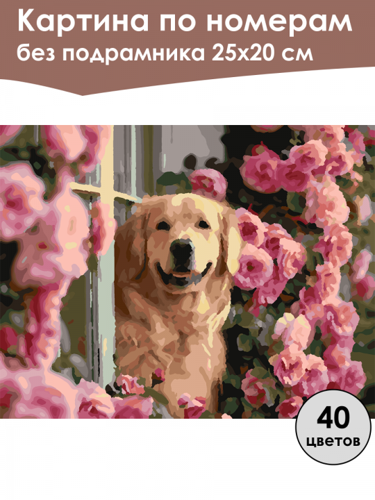 Картина по номерам без подрамника, размер 25х20 см, произведена нами. Она включает 40 оттенков и 1754 контуров, что придаёт ей глубину цвета и плавные переходы. Картина выглядит более ярко и живо. В комплект входит глянцевый лак, которым можно покрыть работу по желанию. Краски качественные, имеют хорошую укрывистость, хватает двух проходов что бы закрасить символы на схеме. Они упакованы герметично, что сохраняет их жидкими. Все необходимые инструменты для начала работы также включены в комплект. Мы не используем экосольвентные чернила, которые содержат свинец и могут быть вредны для здоровья. Наши картины напечатаны безопасными водными пигментными чернилами, обеспечивающими чёткое изображение и легко читаемые обозначения. Холст плотный, имеет мелкую зернистость, легко разглаживается и устойчив к сминанию. Картина поставляется в бурой коробке. Следует отметить, что картина без подрамника её нельзя натянуть на подрамник из-за узких краёв, она предназначена для оформления в рамочку. Золотистый ретривер выглядывает из окна, окружённый яркими розовыми цветами, создавая атмосферу легкости и счастья в живописной обстановке.