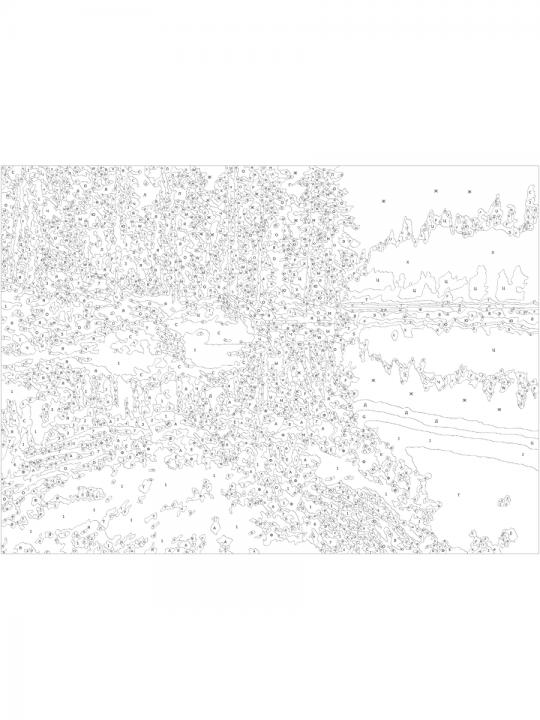 Картина по номерам без подрамника, размер 35х25 см, произведена нами. Она включает 40 оттенков и 2361 контуров, что придаёт ей глубину цвета и плавные переходы. Картина выглядит более ярко и живо. В комплект входит глянцевый лак, которым можно покрыть работу по желанию. Краски качественные, имеют хорошую укрывистость, хватает двух проходов что бы закрасить символы на схеме. Они упакованы герметично, что сохраняет их жидкими. Все необходимые инструменты для начала работы также включены в комплект. Мы не используем экосольвентные чернила, которые содержат свинец и могут быть вредны для здоровья. Наши картины напечатаны безопасными водными пигментными чернилами, обеспечивающими чёткое изображение и легко читаемые обозначения. Холст плотный, имеет мелкую зернистость, легко разглаживается и устойчив к сминанию. Картина поставляется в защищённой бурой коробке. Следует отметить, что картина без подрамника её нельзя натянуть на подрамник из-за узких краёв, она предназначена для оформления в рамочку. Пейзаж в стиле цифровой живописи, где в центре внимания лесное озеро, отражающее высокие сосны с зелеными и желто-оранжевыми листьями, берег окружен камнями и яркими красными кустарниками, создающими контрастные акценты, а дальний план теряется в легкой дымке, делая картину гармоничной и спокойной.