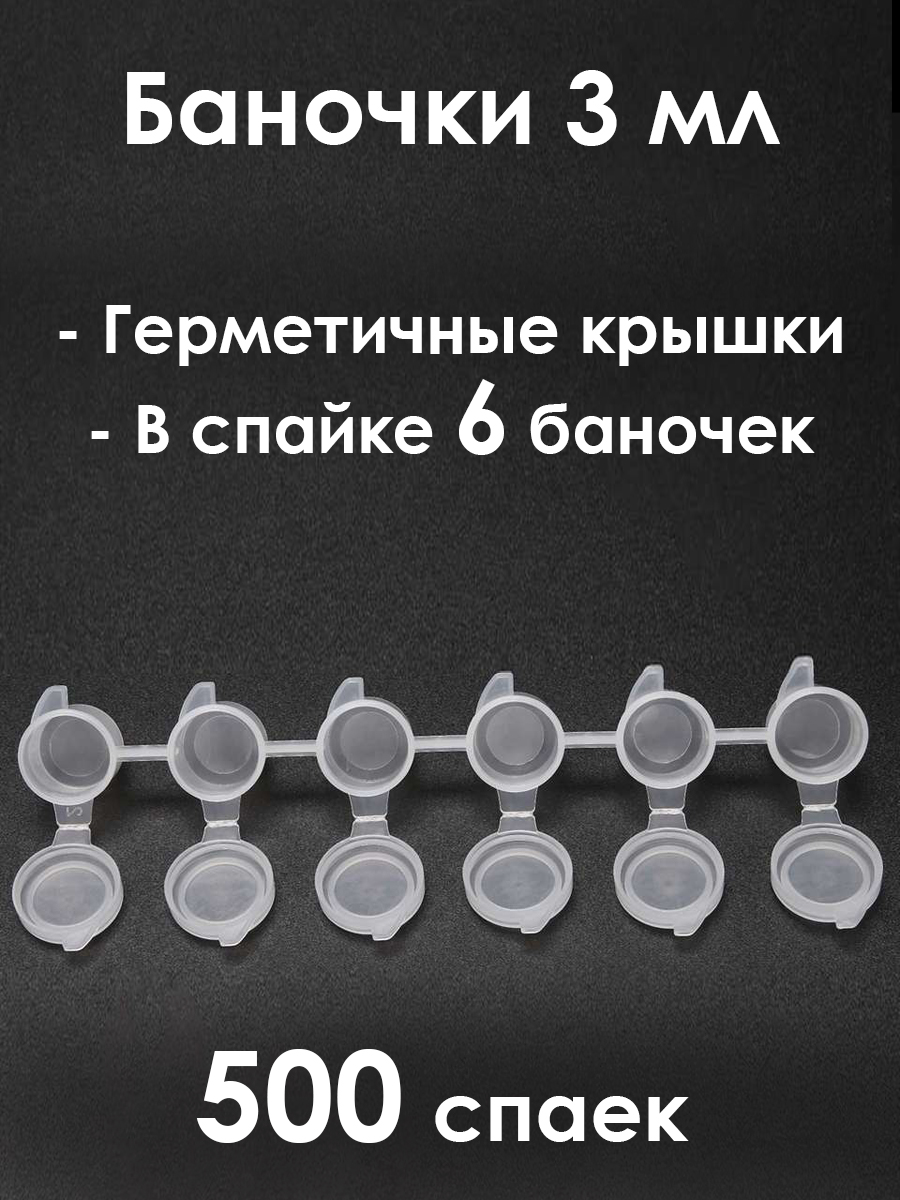 Баночки 3 мл с герметичными крышками идеальное решение для хранения красок, косметики и мелочей для творчества. Баночки соединены в удобную спайку (ленту) по 6 штук, что упрощает организацию рабочего места. Изготовлены из высококачественного первичного полипропилена прочного, безопасного и устойчивого к воздействию красок и растворителей. Благодаря герметичным крышкам содержимое не высыхает и не теряет своих свойств даже при длительном хранении, а прозрачные стенки позволяют видеть цвет или оттенок без открытия крышки, что экономит время. Баночки поставляются наборами по 500 спаек (лент) и прекрасно подойдут для художников и производителей картин по номерам, мастеров маникюра и визажистов, любителей бисероплетения, скрапбукинга и других видов рукоделия. В контейнерах удобно хранить краски, стразы, блёстки, пайетки, бисер или любые мелкие аксессуары аккуратно, красиво и надолго.