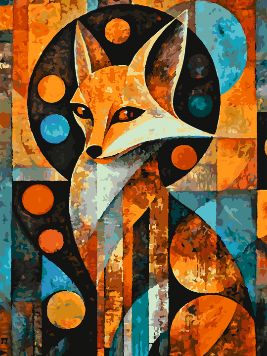 Картина по номерам на подрамнике, размер 70х50 см, произведена нами. Она включает 40 оттенков и 2774 контуров, что придаёт ей глубину цвета и плавные переходы. Картина выглядит более ярко и живо. В комплект входит глянцевый лак, которым можно покрыть работу по желанию. Краски имеют хорошую укрывистость, хватает двух проходов что бы закрасить символы на схеме. Так же они сохраняют текстуру мазков, не растекаясь и не разглаживаясь полностью на холсте. При покрытии глянцевым лаком создаётся эффект приближенный к масляной живописи. Краски упакованы герметично, что сохраняет их жидкими. Все необходимые инструменты для начала работы также включены в комплект, в том числе и крепления на стену. В картине используется крепкий подрамник со специальной вставкой, которая предотвращает провисание холста во время рисования. Это обеспечивает комфортный процесс работы и гарантирует, что холст всегда будет оставаться хорошо натянутым. Мы не используем экосольвентные чернила, которые содержат свинец и могут быть вредны для здоровья. Наши картины напечатаны безопасными водными пигментными чернилами, обеспечивающими чёткое изображение и легко читаемые обозначения. Холст плотный, имеет мелкую зернистость, легко разглаживается и устойчив к сминанию. Картина поставляется в защищённой бурой коробке. Абстрактная лиса, выполненная в стиле кубизма с использованием теплых тонов оранжевого, синего и черного цветов; композиция состоит из геометрических форм и кругов, создавая яркий и динамичный образ животного на многоцветном фоне.