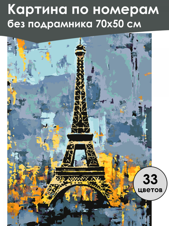 Картина по номерам без подрамника, размер 70х50 см, произведена нами. Она включает 33 оттенков и 2468 контуров, что придаёт ей глубину цвета и плавные переходы. Картина выглядит более ярко и живо. В комплект входит глянцевый лак, которым можно покрыть работу по желанию. Краски имеют хорошую укрывистость, хватает двух проходов что бы закрасить символы на схеме. Так же они сохраняют текстуру мазков, не растекаясь и не разглаживаясь полностью на холсте. При покрытии глянцевым лаком создаётся эффект приближенный к масляной живописи. Краски упакованы герметично, что сохраняет их жидкими. Все необходимые инструменты для начала работы также входят в комплект. Мы не используем экосольвентные чернила, которые содержат свинец и могут быть вредны для здоровья. Наши картины напечатаны безопасными водными пигментными чернилами, обеспечивающими чёткое изображение и легко читаемые обозначения. Холст плотный, имеет мелкую зернистость, легко разглаживается и устойчив к сминанию. Картина поставляется в бурой коробке. Следует отметить, что картина без подрамника её нельзя натянуть на подрамник из-за узких краёв, она предназначена для оформления в рамочку. Абстрактная иллюстрация с образом Эйфелевой башни на фоне абстрактных мазков, сочетающих оттенки голубого, серого и оранжевого, создаёт впечатление яркого и динамичного городского пейзажа.