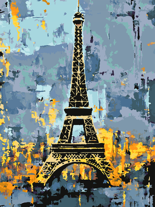 Картина по номерам на подрамнике, размер 70х50 см, произведена нами. Она включает 33 оттенков и 2468 контуров, что придаёт ей глубину цвета и плавные переходы. Картина выглядит более ярко и живо. В комплект входит глянцевый лак, которым можно покрыть работу по желанию. Краски имеют хорошую укрывистость, хватает двух проходов что бы закрасить символы на схеме. Так же они сохраняют текстуру мазков, не растекаясь и не разглаживаясь полностью на холсте. При покрытии глянцевым лаком создаётся эффект приближенный к масляной живописи. Краски упакованы герметично, что сохраняет их жидкими. Все необходимые инструменты для начала работы также включены в комплект, в том числе и крепления на стену. В картине используется крепкий подрамник со специальной вставкой, которая предотвращает провисание холста во время рисования. Это обеспечивает комфортный процесс работы и гарантирует, что холст всегда будет оставаться хорошо натянутым. Мы не используем экосольвентные чернила, которые содержат свинец и могут быть вредны для здоровья. Наши картины напечатаны безопасными водными пигментными чернилами, обеспечивающими чёткое изображение и легко читаемые обозначения. Холст плотный, имеет мелкую зернистость, легко разглаживается и устойчив к сминанию. Картина поставляется в защищённой бурой коробке. Абстрактная иллюстрация с образом Эйфелевой башни на фоне абстрактных мазков, сочетающих оттенки голубого, серого и оранжевого, создаёт впечатление яркого и динамичного городского пейзажа.