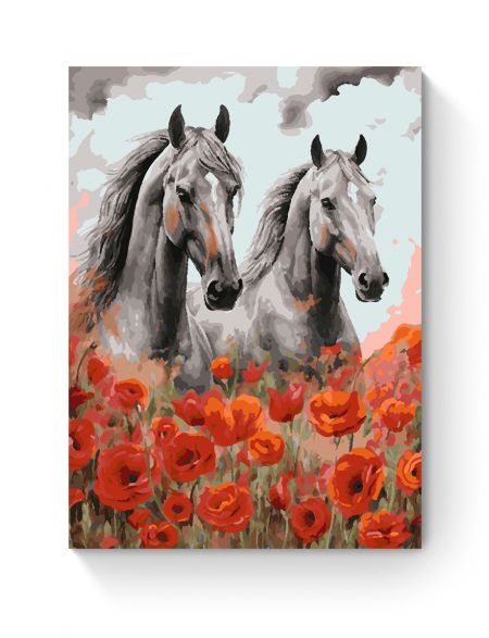 Картина по номерам на подрамнике «Кони в маках» 70x50 см