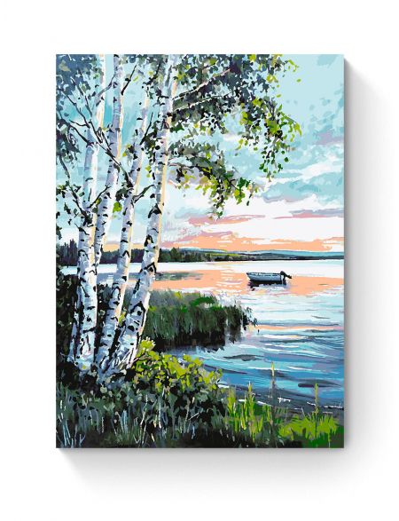 Картина по номерам на подрамнике «Березы у воды» 90x70 см
