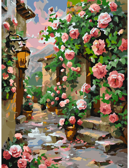 Картина по номерам без подрамника «Улочка роз» 35x25 см