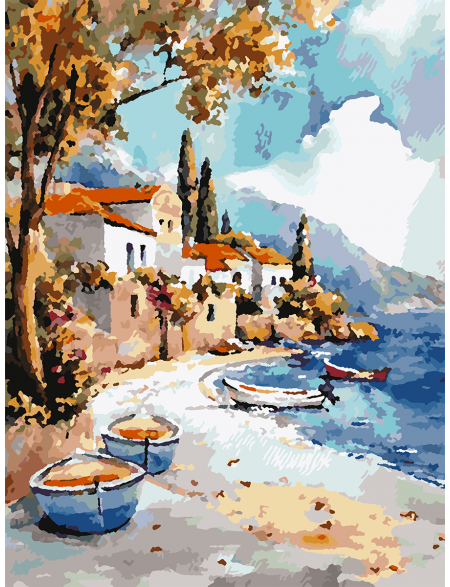 Картина по номерам без подрамника «Домик у моря» 35x25 см