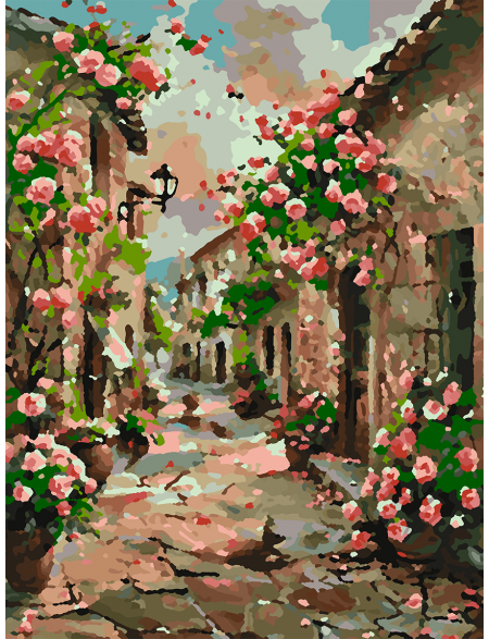 Картина по номерам без подрамника «Улочка роз» 40x30 см