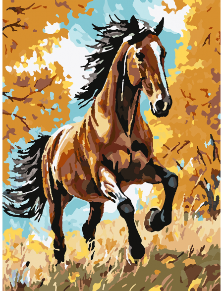 Картина по номерам без подрамника «Гнедой конь» 90x70 см