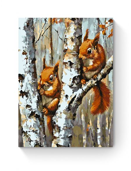 Картина по номерам без подрамника «Белочки» 70x50 см