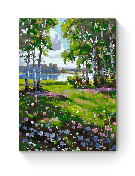 Картина по номерам без подрамника «Береза у реки» 35x25 см