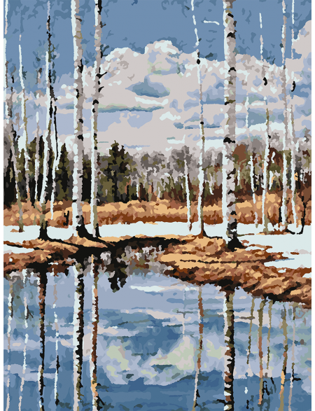 Картина по номерам на подрамнике «Березы у воды» 25x20 см